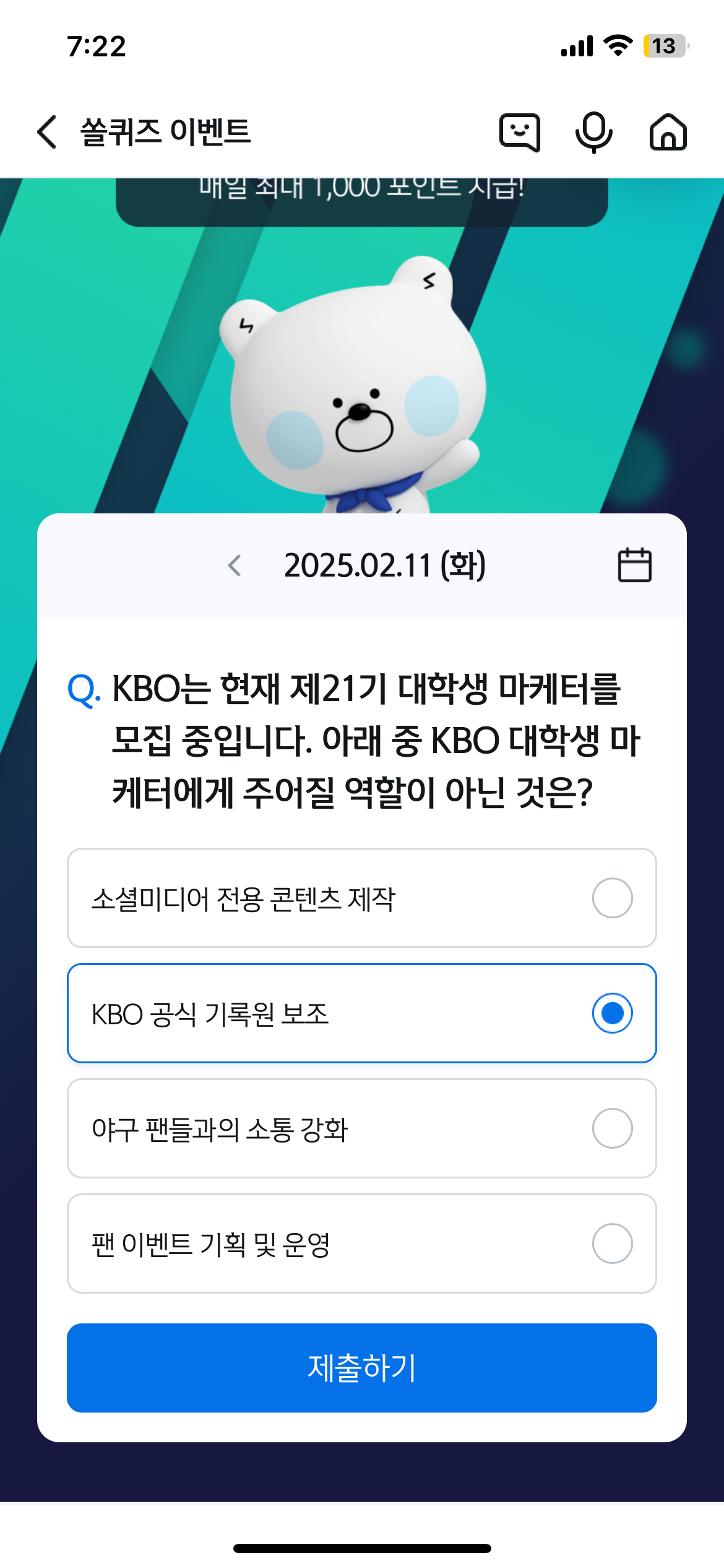 소셜미디어전용콘텐츠제작 KBO공식기록원보조 야구팬들과의소통강화 팬이벤트기획및운영