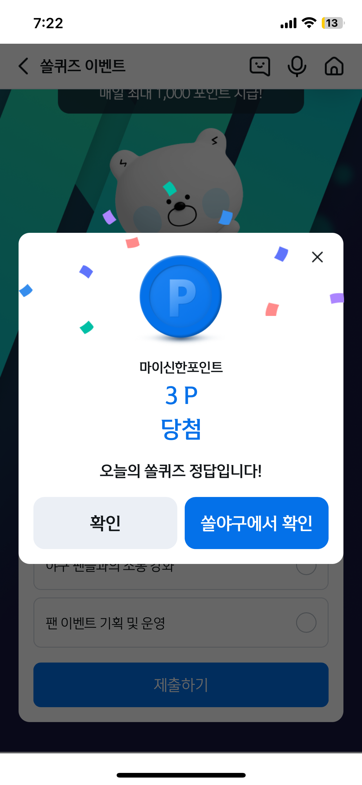 정답 즉시 마이신한포인트 100% 당첨!