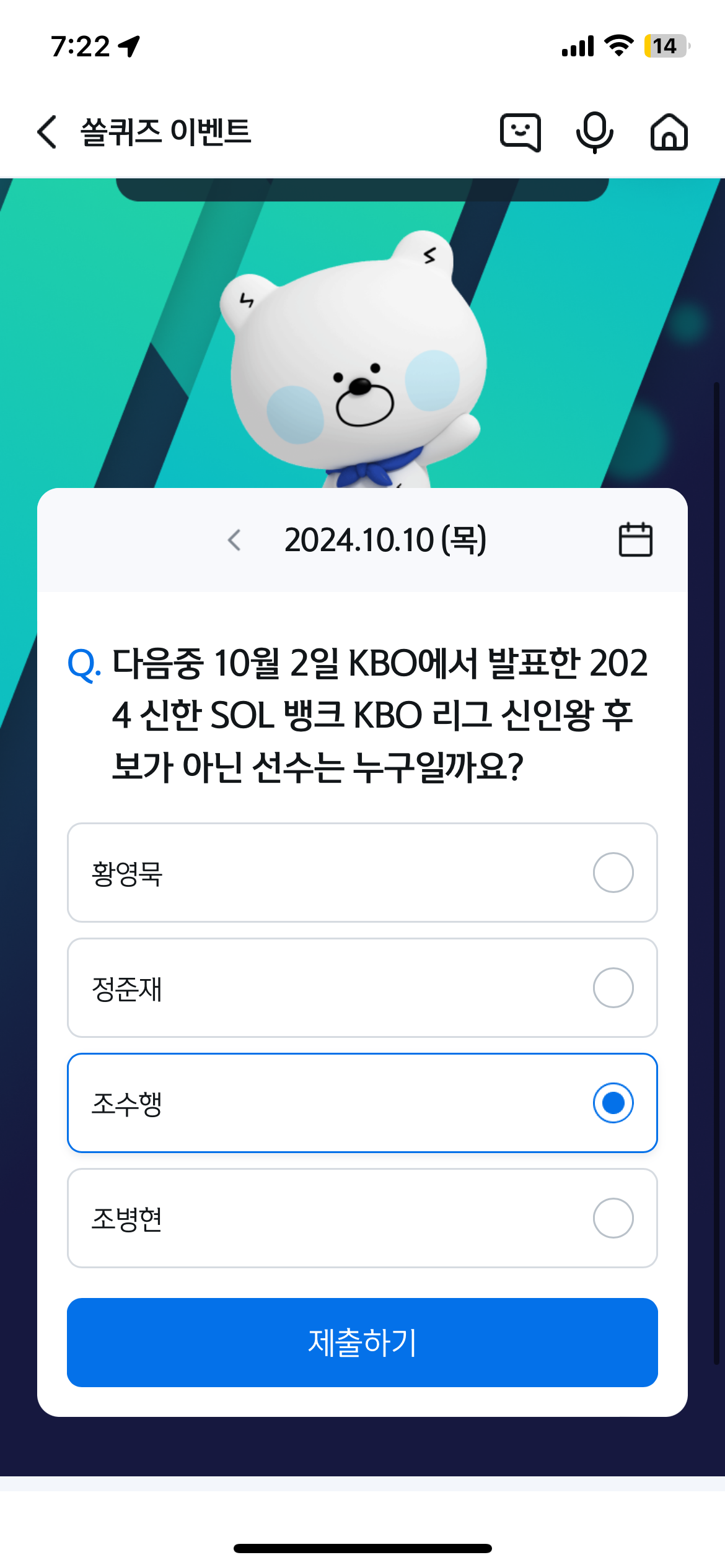 2024년10월10일 신한쏠퀴즈 정답
