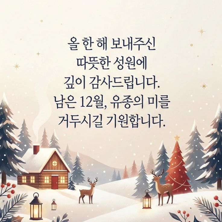 다사다난했던 2025년이 저물어 갑니다. 남은 연말 마음 편히 마무리하시고, 새해에는 계획하시는 모든 일이 뜻대로 이루어지길 바랍니다.