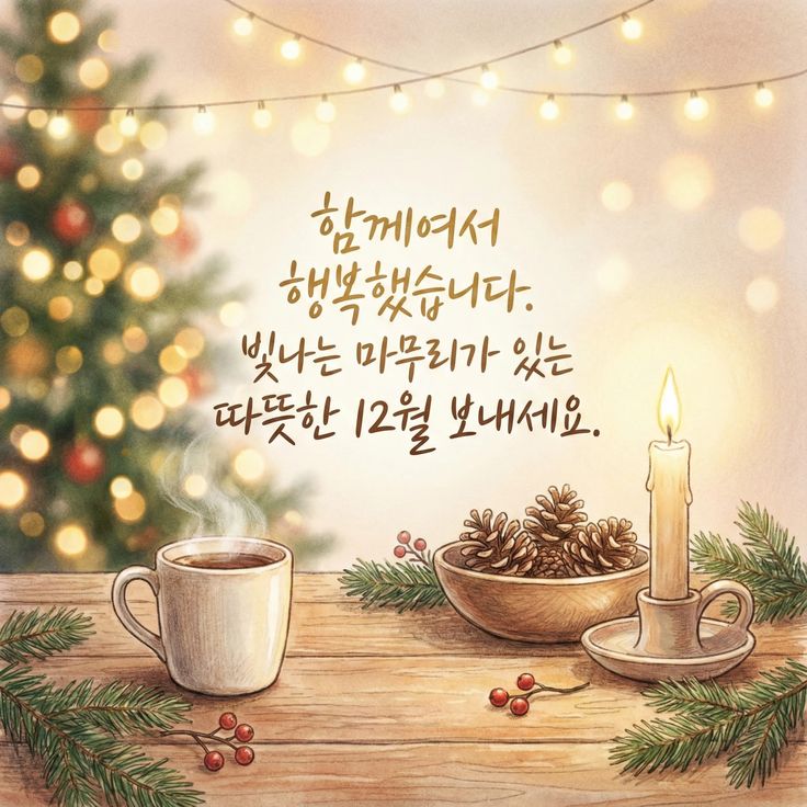 벌써 12월의 마지막이네. 올 한 해 정말 고생 많았어! 남은 시간은 걱정 다 내려놓고 맛있는 거 먹으면서 행복하게 보내길 바래.